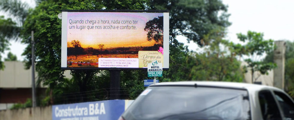 Uma mídia de alto impacto visual, devido a sua longa exposição de 24 horas por dia, por no mínimo 06 meses. Localizado na Av... Aquarius com Av.. Tucunarés em frente ao Marília Shopping, maior shopping da cidade, contendo uma grande base de luminosos.